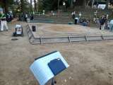 あと30分ぐらいではじまります。風があって鎮守の森は涼しいです。