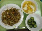 献立は、 「ソースやきそば、きゅうりのちゅうか味、あんにん豆腐、牛乳」です。 ...