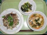 献立は、 「豆入りひじきごはん、よしのじる、和風サラダ、牛乳」です。 吉野...