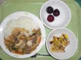 献立は、 「ごはん、ちゅうかサラダ、豆腐の五目いため、くだもの、牛乳」です。 ...