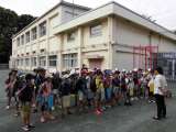 今日は3年生が社会科見学に行きます。 校庭で朝の会をやっていましたが、とても立...
