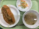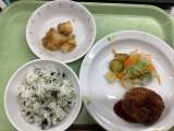☆こんだて☆ わかめごはん ムロあじのメンチカツ 野菜のひとしお じゃがいもの...