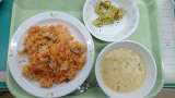 ☆こんだて☆ チキンライス コーンポタージュ フライドポテト 牛乳 ☆食材...