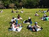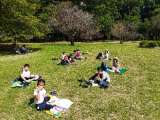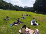 砧公園を後に、等々力渓谷に向かいます。区内の学校が他にも来ています。