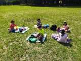 お弁当が終わった子たちは遊んでいます。子どもたちは自分のお弁当についてたくさん話...