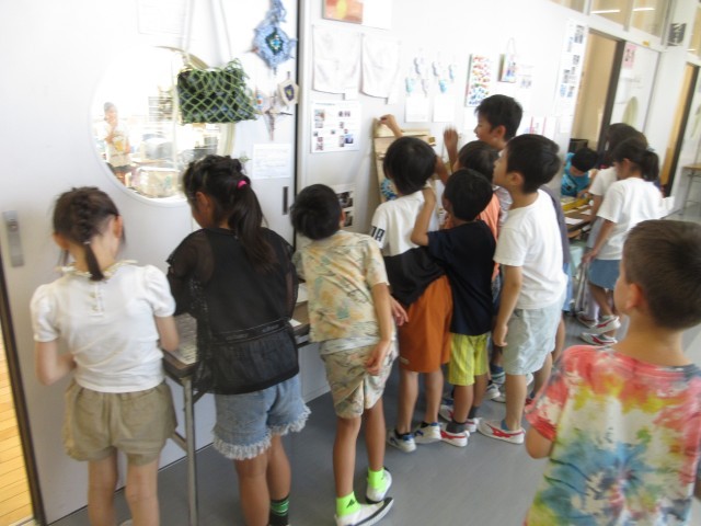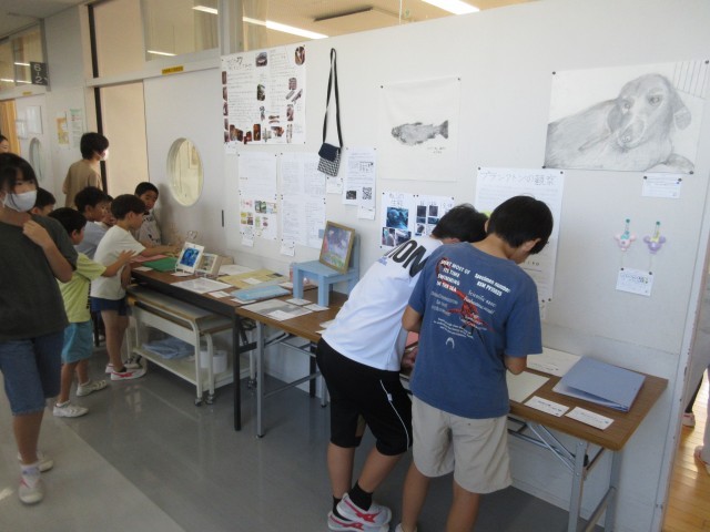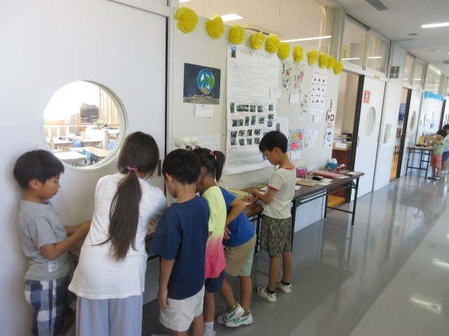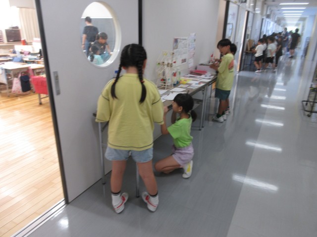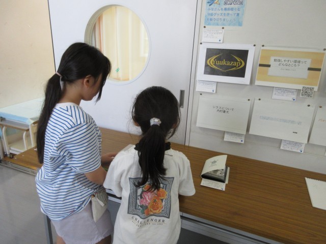 子どもたちが夏休みに自由に課題設定して取り組んだ自由研究を展示して「夏休み自由研究作品展」を開催しています。子どもたちは自由な発想でのびのび作った互いの力作を楽しみながら見合っていました。