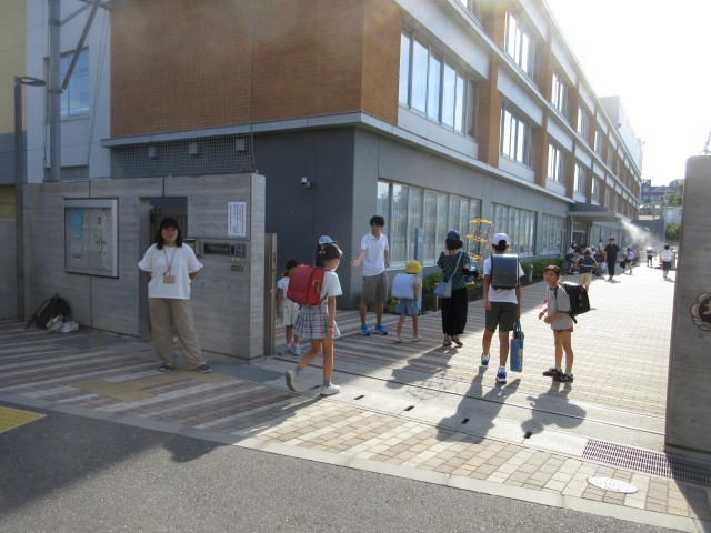 9/1~9/5の期間、学び舎挨拶運動に取り組んでいます。運営・代表委員の児童、教員、世田谷中学校の生徒や地域の方が正門に立ち、朝の挨拶をしています。爽やかな声が響き、穏やかに一日を始められます。