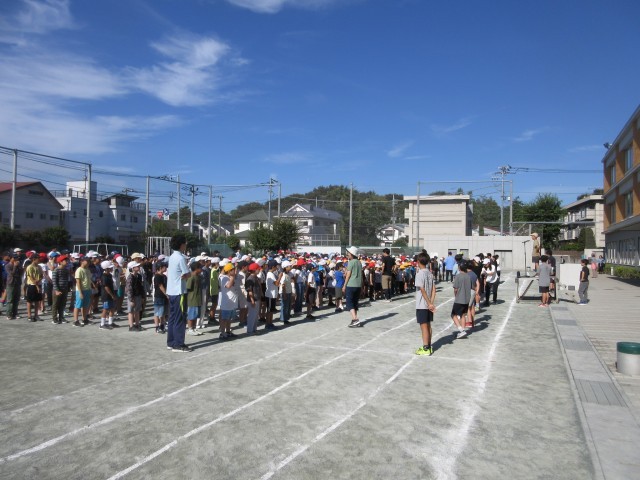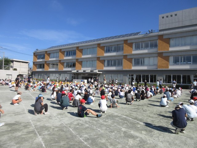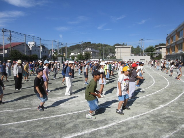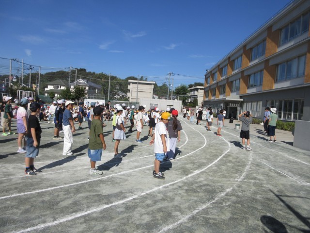 9月25日、秋晴れの空の下、朝の活動時間にわくスポを行いました。「言うこと一緒、やること一緒」「言うこと一緒、やること反対」…などのパターンで体育委員の呼びかけで全校児童が前・後ろ・左右へ移動して楽しみました。