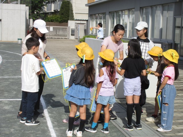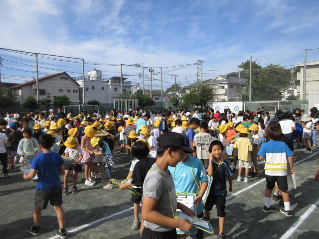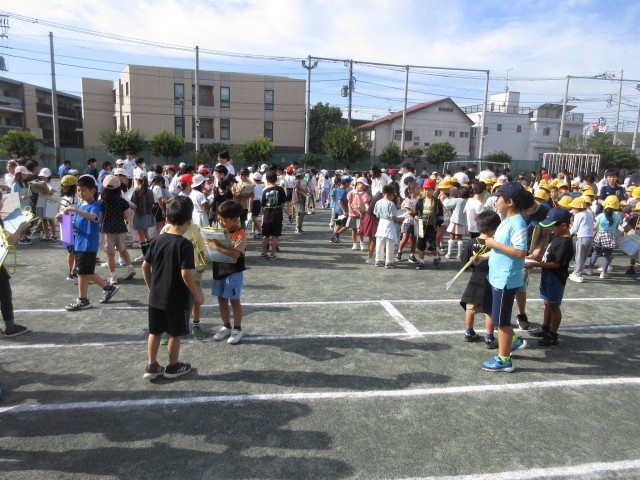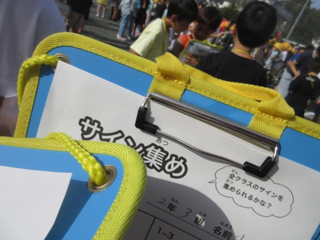 10月2日、朝の活動時間に集会委員会による児童集会を校庭で行いました。「サイン集め」というお題で全クラスのお友だちからサインを書いてもらうという内容でした。楽しみながらサイン交換をしている姿が見られました。