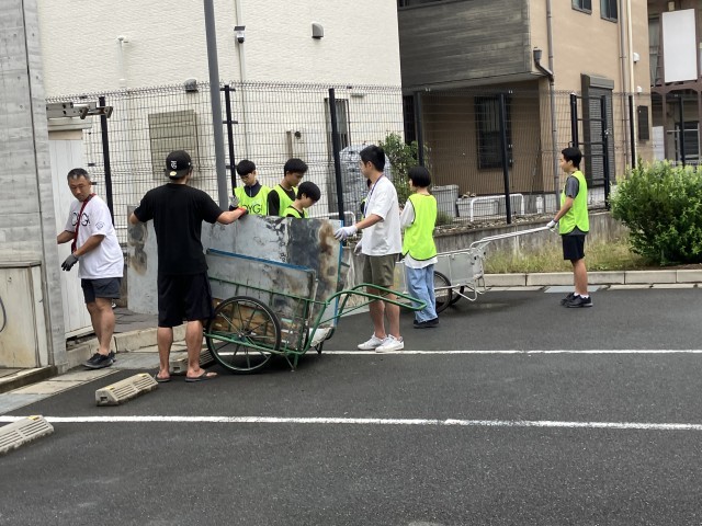 写真は、花火、宿泊の様子、後片付けの様子です。