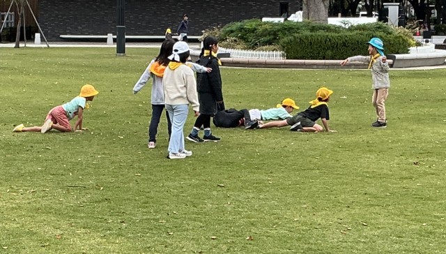 秋さがしの後は、広場で1年生と一緒にました。自分たちで遊びを考えて1年生を優しくサポートすることができました。
