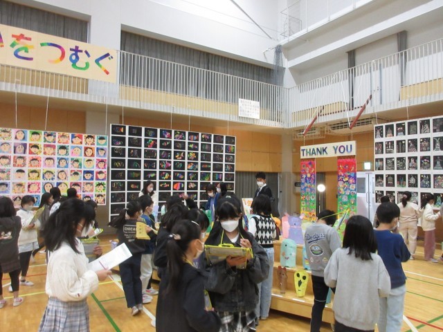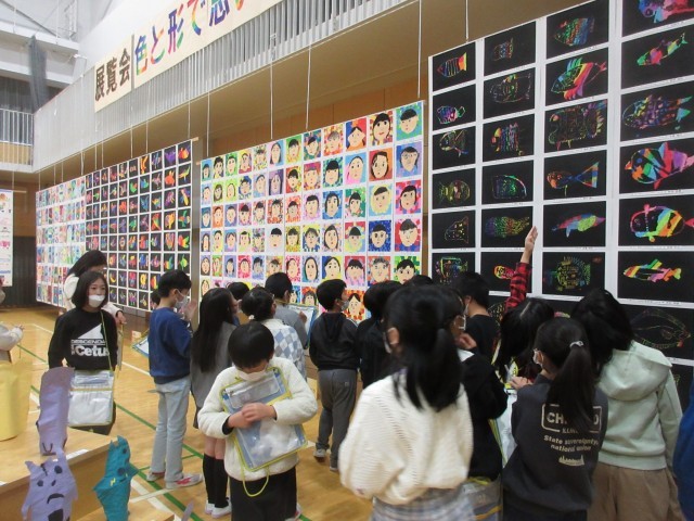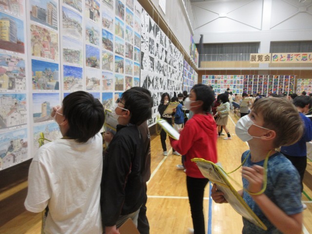 11月13日、展覧会1日目の児童鑑賞日、4年生が作品を鑑賞しました。沢山の作品を見ながらも5・6年生の作品には特に興味をもって見る姿が印象的でした。