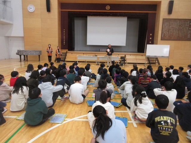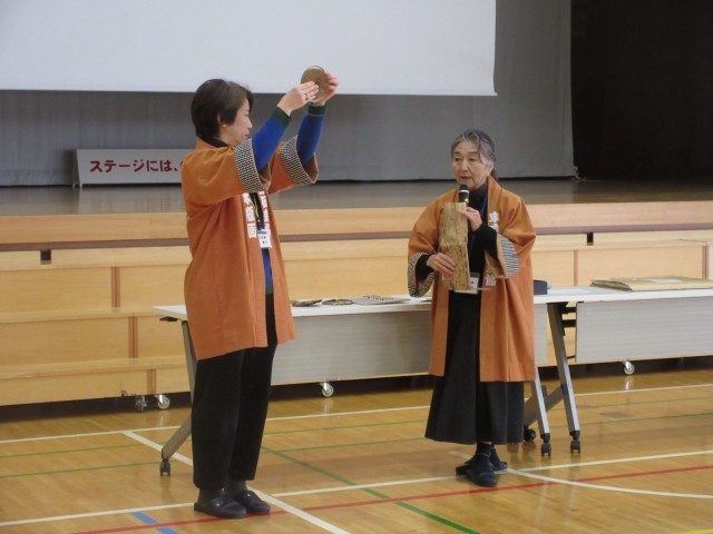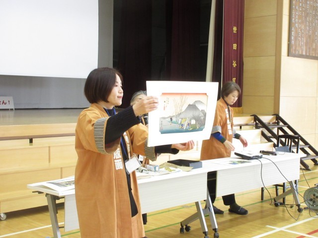 12月15日、経済産業省委託事業として4年生対象に「伝統工芸(木版画)を学ぼう」という特別授業を実施しました。子どもたちは東京伝統木版画工芸協同組合の職人さんたちに丁寧に刷り方などを教えていただきながらグループごとに3種類の絵柄で多版多色刷り木版画の体験をしました。刷り終わった後、型抜き、押印、張りの作業を経て自分が刷り上げた木版画で団扇を仕上げることができて満足そうな子どもたちの笑顔が印象に残る体験学習でした。