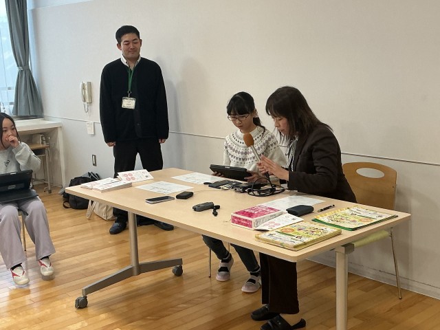 ラジオ局の仕事についてのお話をしていただいた後で、インタビューを受けました。マイクを向けられると緊張が増し、早口になる子もいました。