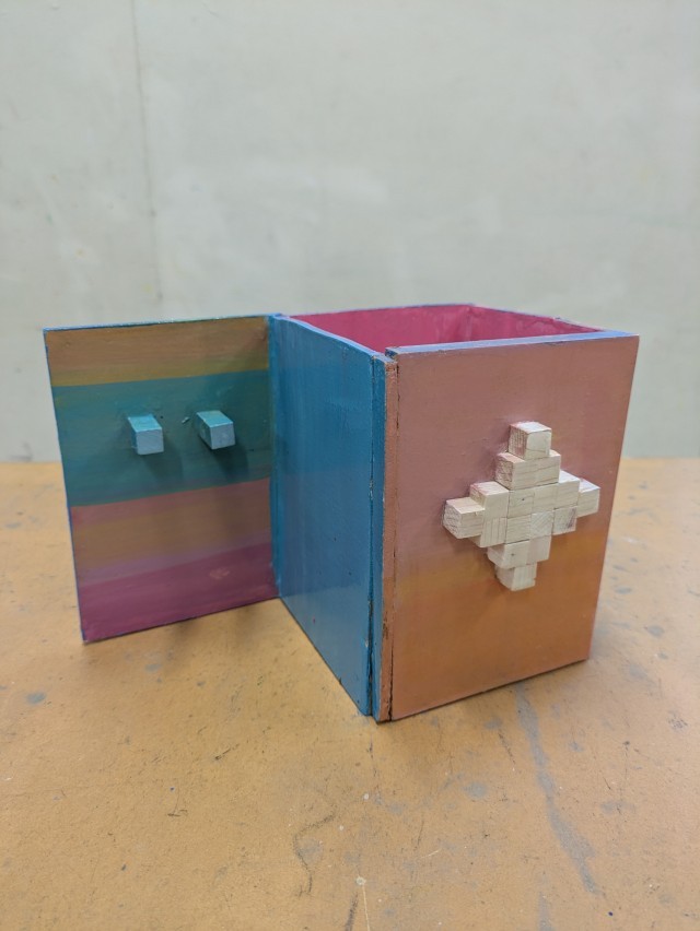 6年生は図工授業で題材「わたしはデザイナー 12さいの力で」を制作しました。子どもたちは生活の中で役立つ「入れ物」をデザインして板取りを工夫しながら設計し、木工づくりの経験を生かして材料や工具を使いながら意欲的に制作しました。自分の作品に愛着をもっているので「早く家で使いたい。」「うちの人に見てもらいたい。」などの要望が多数あり今週持ち帰りますので、6年生の保護者の皆様はぜひご覧になってください。いくつかの作品を学校ホームページで紹介しますのでご覧ください。