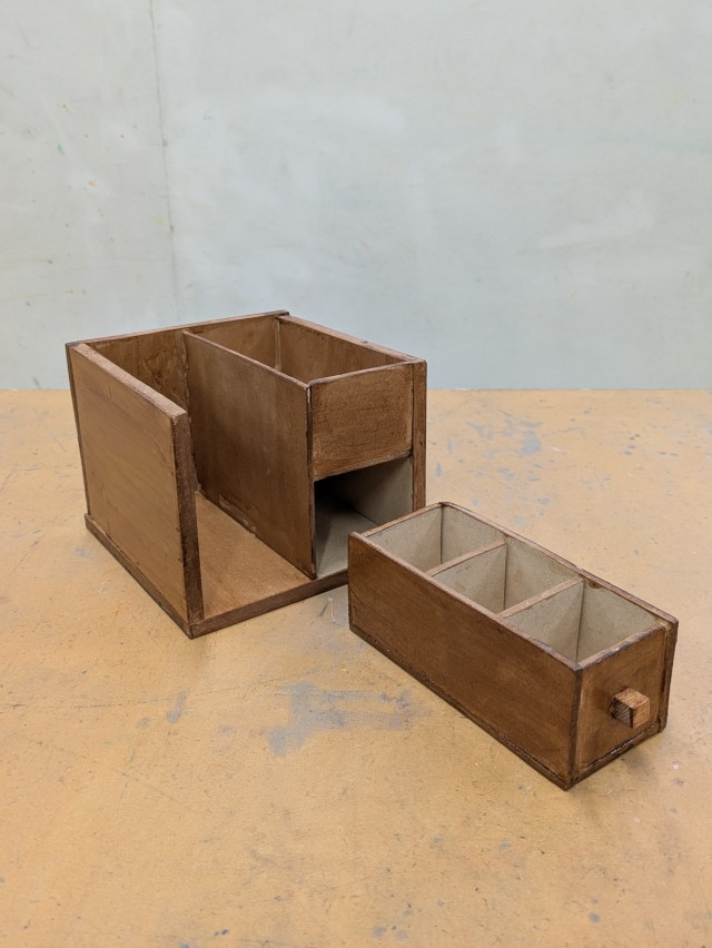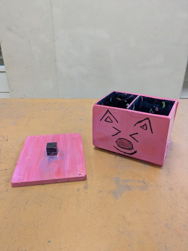 6年生は図工授業で題材「わたしはデザイナー 12さいの力で」を制作しました。子どもたちは生活の中で役立つ「入れ物」をデザインして板取りを工夫しながら設計し、木工づくりの経験を生かして材料や工具を使いながら意欲的に制作しました。自分の作品に愛着をもっているので「早く家で使いたい。」「うちの人に見てもらいたい。」などの要望が多数あり今週持ち帰りますので、6年生の保護者の皆様はぜひご覧になってください。いくつかの作品を学校ホームページで紹介しますのでご覧ください。