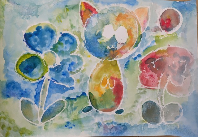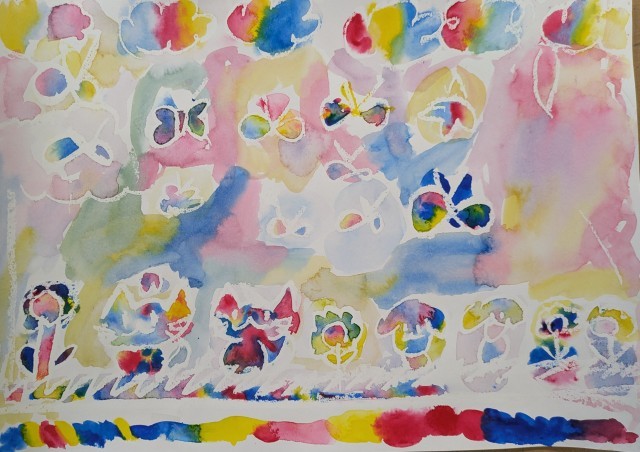3年生は図工授業で題材「にじんで広がる物語」に取り組み、水彩絵の具をにじませてできる形や色から物語をイメージして制作しました。子どもたちは普段とは違う絵の描き方に戸惑う場面もありましたが慣れてくると楽しみながらにじみの世界をつくる姿が見られました。いくつかの作品を学校ホームページで紹介しますのでご覧ください。
