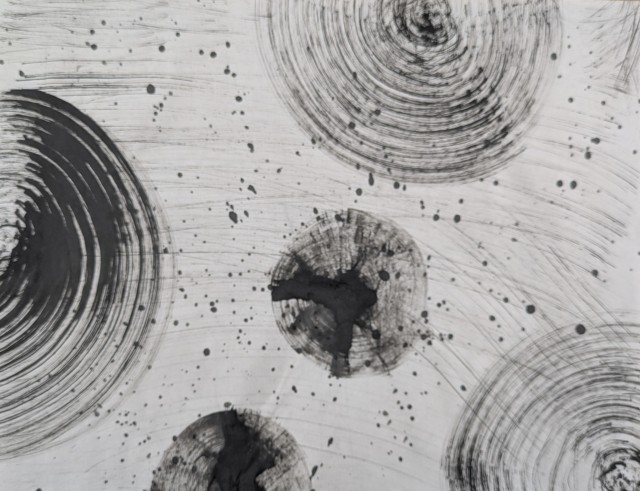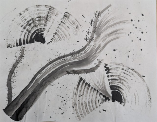 6年生が図工授業で制作した題材「墨から生まれる世界」を紹介します。子どもたちは墨の濃さや筆使いなどを練習し、「濃淡の調整」「かすれ」「にじみ」などによる表現方法を楽しみました。西洋とは異なる東洋の水墨画的な余白の余韻を感じながらテーマを決めて心象風景を表しました。今回は学校ホームページのみでの紹介になりますが墨による瞬間的な表現をご覧ください。