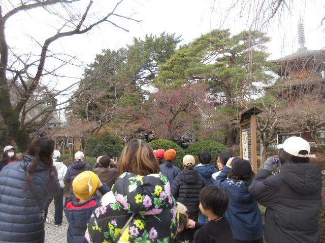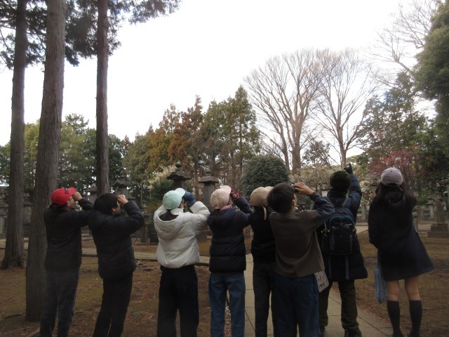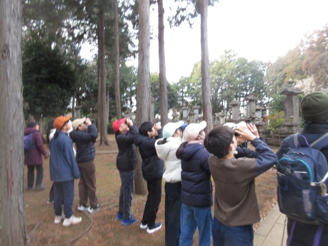 2月13日、希望者による早朝探鳥会を実施しました。寒空の下、子どもたちは早朝の豪徳寺で愛鳥ボランティアの講師の方の説明を聞きながらたくさんの野鳥を観察することができました。