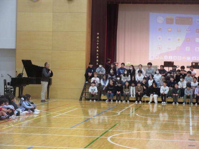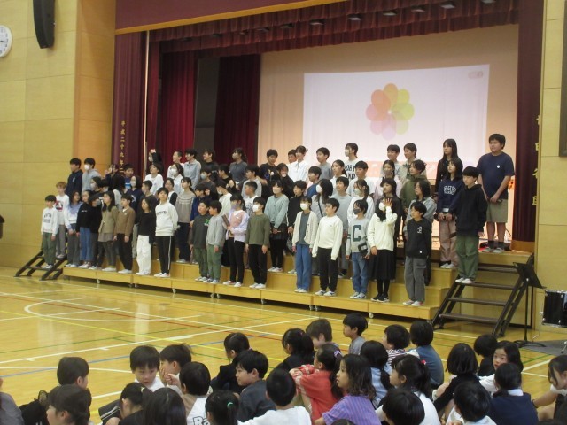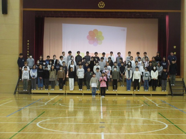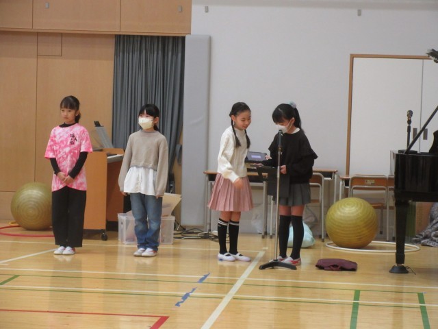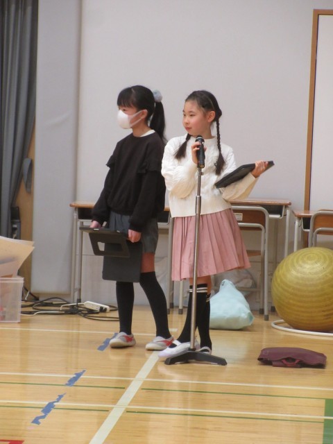3月6日、各学年の子どもたちが6年生への感謝の思いを込めて準備してきた6年生を送る会を実施しました。運営代表委員による「始めのことば」と「校長先生の話」からスタートしました。