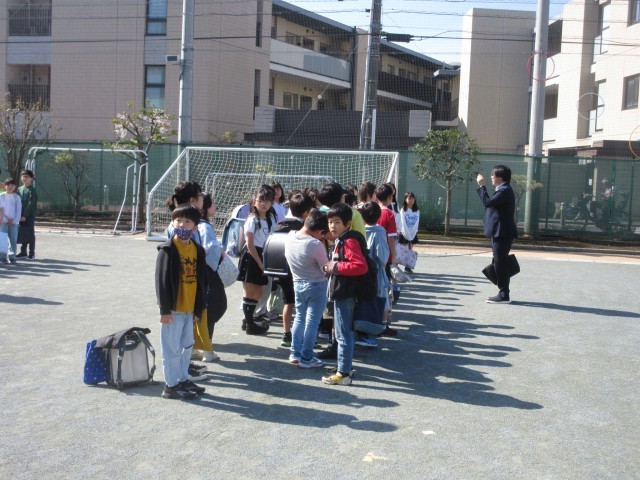 始業式の後、子どもたちは新しい担任の先生のもと、初めての学活があり、新しい友だちと一緒に担任の先生の話を聞いていました。(2・6年生は入学式準備を始めました)