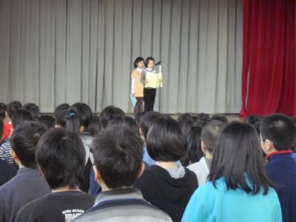 今日は体育館で始業式が行われ、校長先生から子どもたちに今年の目標についてのお話がありました。また、代表の2年生2人が3学期頑張りたいことについて発表し、みんなで校歌を歌って、元気に3学期のスタートを切ることができました。
