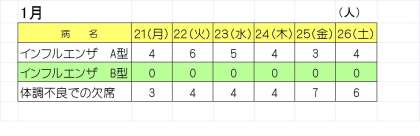 本校では、1月16日(水)からインフルエンザの発生が始まりました。