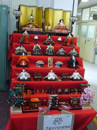 もうすぐひな祭りです。本校では、毎年2月中旬になると、1階の西階段下にひな人形(5段飾り)を飾っています。