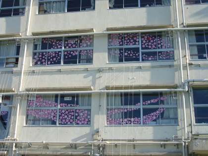 卒業式が近づいて来ました。本校では、毎年2月末になると、6年生の卒業と新入生の入学をお祝いする意味で、教室の窓に桜の花を飾り付けています。今年も飾り付けが終わりました。しばらくの間、桜の飾りをお楽しみください。