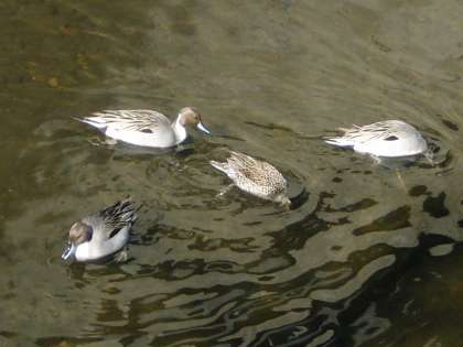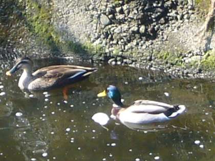 仙川では、カモの仲間でだけでも、マガモ、コガモ、ヒドリガモ、オナガガモ、カルガモなど5種類(写真 上:オナガガモ 中:マガモ)、合計で約20種類の野鳥を観察することができました。