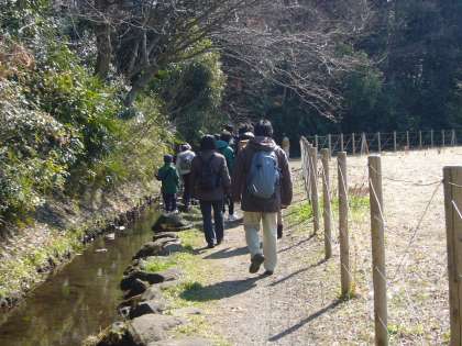 H25年2月23日(土)今年度最後の探鳥会である、親子探鳥会がありました。成城学園前駅から仙川におりて、川に沿って砧公園まで歩きました。17組の親子が参加し、3つの班に分かれてインストラクターの方に解説していただきました。