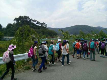 川場村は、晴天です。とてもあついです。ふじやまビレジを目指してあるいています。