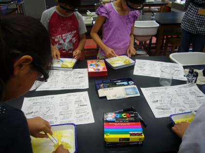 そして、事前の調査をもとに、国語、数学、英語、社会、理科、美術、技術、家庭、体育の9つの教科に分かれて、45分間の授業を体験しました。どの教科も、手を動かして作業する活動が中心でしたので、6年生は真剣なまなざしで学習に取り組んでいました。