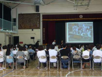 4月から6月までの各学年の出来事を、写真なども交えて紹介しました。クラスの担任以外の話を聞くことができる数少ない機会です。今年度もたくさんの方が参加してくださいました。
