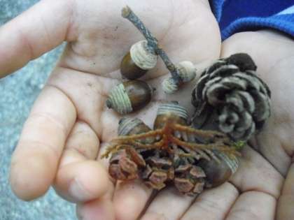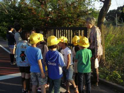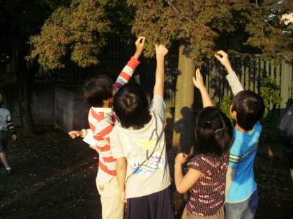 気持ちのよい秋晴れとなり、まさに探鳥会日和!今日もたくさんの子どもたちと出発しました。まず正門を出て、すぐ畑の前に・・・なんと、えんじゅの木を発見!豆科の木だそうです。豪徳寺に着くと、たくさんの鳥の声が聞こえてきました。まるで、私たちを歓迎してくれているかのようでした。もみじの種に、ドングリの木の実、そして鳥たちの大好物だと言われているムクの木の実など、子どもたちは大喜び!夢中になって拾う姿が見られました。鳥だけでなく、小さい秋をたくさん見つけることができ、秋の深まりを肌で感じた有意義な時間となりました。