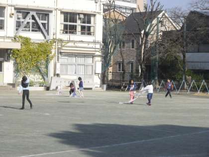 1,2年生は、生活科で昔遊びを楽しもうという単元があります。竹とんぼ、こま、凧揚げ、お手玉、剣玉、羽根つき、あやとりなど、最近では機会を設けないとなかなか接することができなくなっている遊びに、取り組んでみようと企画します。