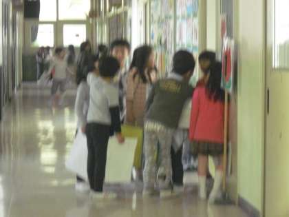 探検を終えた1年生は、「学校ってすごい、広いんだ。」「体育館のクイズはおもしろい。」「いっぱい教室があるんだね。」「○○さんは、優しいよ。」「楽しかったよ。」「給食室を見てみたい。」と、次から次に感想があふれ出てきました。