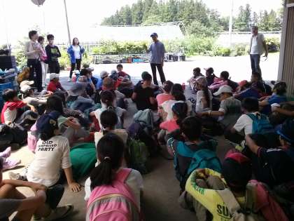 村めぐりでは、りんご畑、田んぼの様子、こんにゃく畑などを見学して歩きました。宮田農園で、美味しいりんごジュースを飲みました。