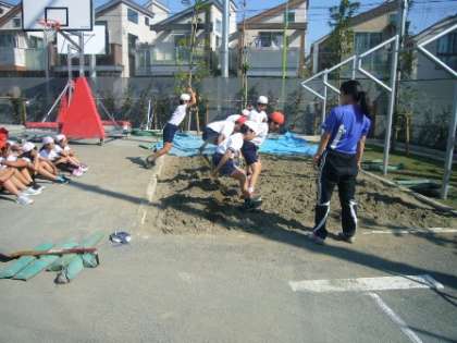 中学校の体育専科の先生方が、4種目に分かれて、それぞれの種目のポイントを6年生に指導してくださいました。各小学校では、連合運動会に向けて、この日の指導を生かしてこれから練習に取り組みます。