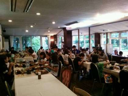 ホテルナチュラルガーデン初めての食事です。今日は、日中とても暑かったので、汗をたくさんかきました。ご飯を3杯もお代わりした人もいました。
