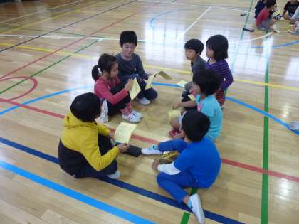11月12日(木)に、1,2年生は砧公園に遠足に行きます。今日(11月10日(火))、グループで顔合わせをしました。2年生が、自分たちで考えてきた当日の遊びを1年生に教えたり、めあてを確認しあったりしました。