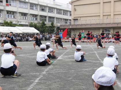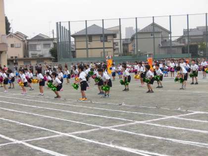 1年生の表現「ジャンプ!」では、曲に合わせて1年生がポンポンを振りながらかわいらしく踊りました。