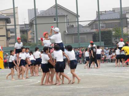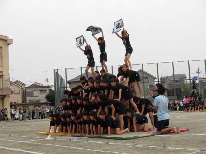 組体操のタワーが完成すると、校庭が感動の拍手で包まれました。
