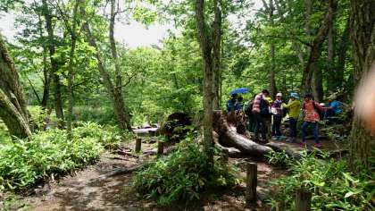 11時に泉門池に到着しました。昼御飯を食べ始めた途端に、雨が降り始めましたが、傘をさしながら、なんとか食べ終わりました。出発するころには、日が射してきました。