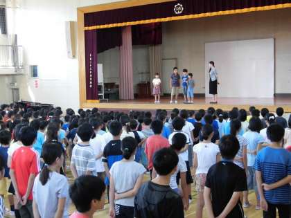 夏休み中静まり返っていた学校に、久しぶりに明るい校歌が響き渡りました。