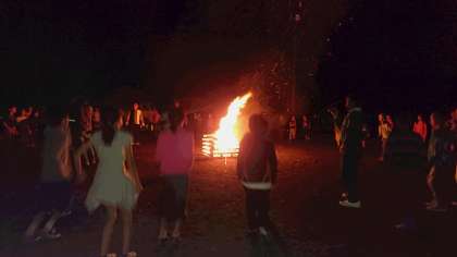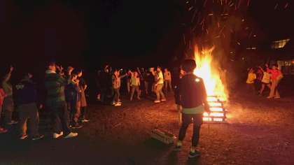 川場に着いてから、雲は多いですが、雨は降っていません。予定通りキャンプファイヤーをすることができました。みんなで盛り上がりました。