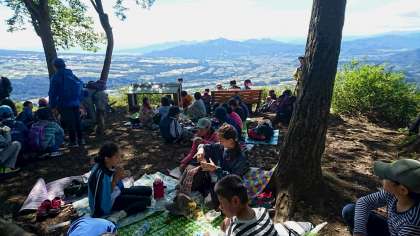 ついに、山頂に到着しました。景色がとてもきれいです。お弁当が美味しいです。