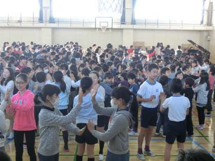 高学年のお兄さんと1年生のペアなど、学年を超えて楽しく歌い合うほほえましい姿が見られました。