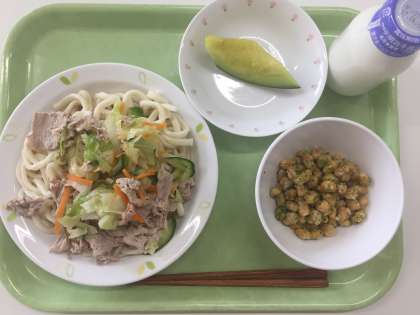 献立 豚しゃぶうどん 青のり大豆 メロン 牛乳