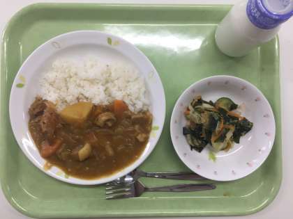 献立 カレーライス 福神漬け わかめサラダ 牛乳